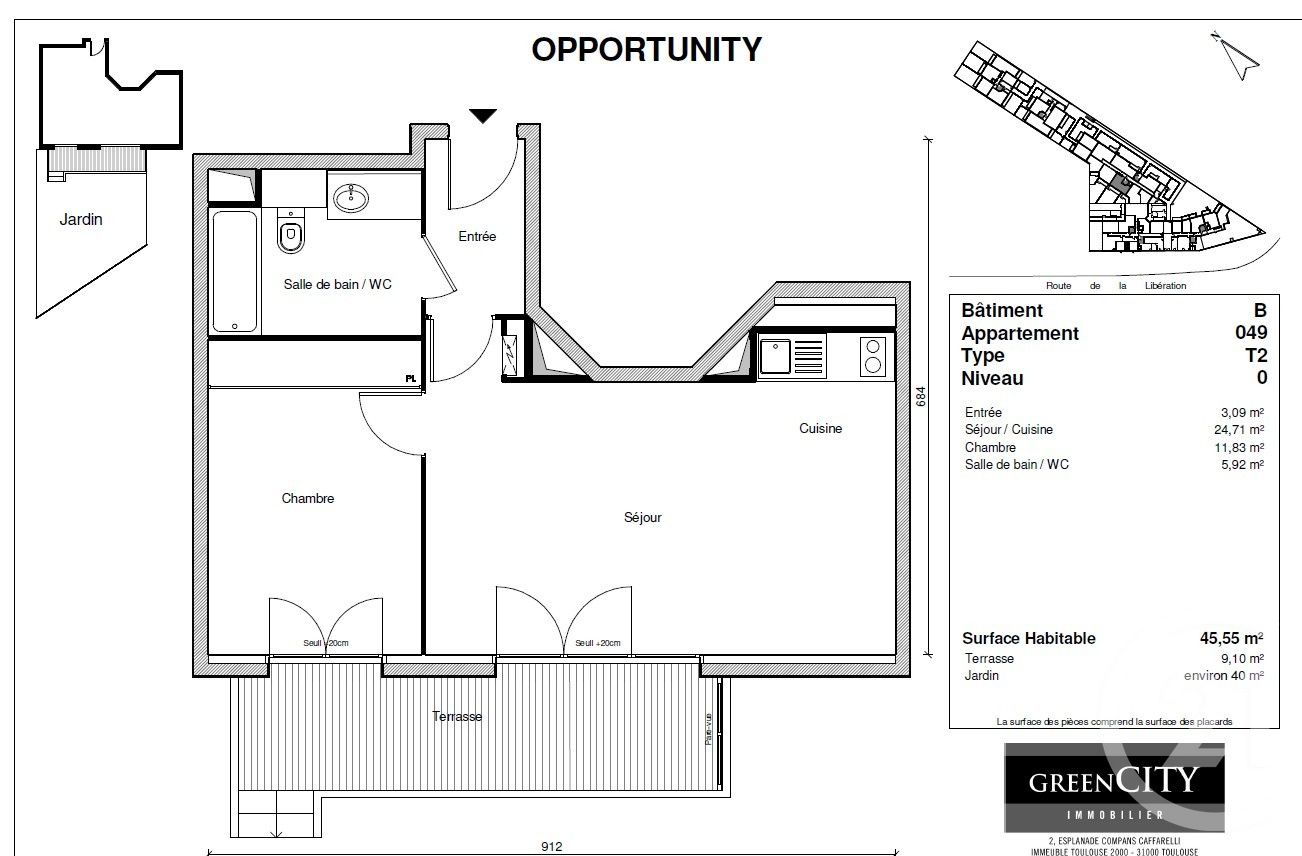 - Surface habitable : 45,6 m2